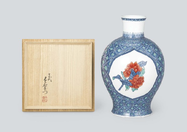- Iro-nabeshima vase with design of camellia