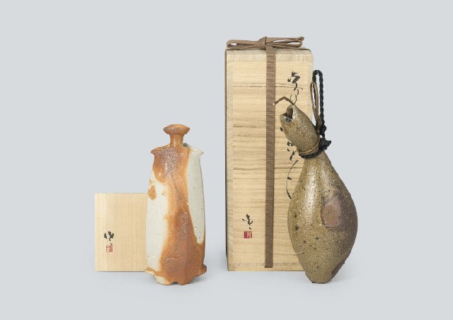 - "Bizen vase"/H24xW9.7cm, marked underneath, "Bizen hanging vase"/H28.4xW12.5cm, marked on the side, each with tomobako(the box signed by the artist).