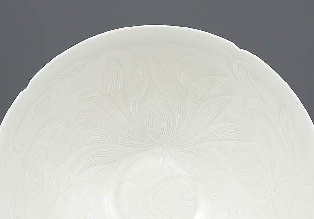 [Lot0545] White porcelain flower shaped bowl with design of arabesque
