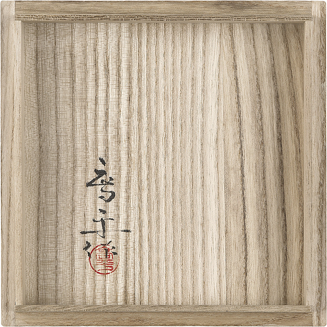 - H16.7xW13.5cm, incised underneath, with tomobako(the box signed by the artist), with a lacquered lid.