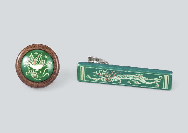 - "Ivory bachiru obi sash clip with Shosoin traditional design"/W2.4cm, "Ivory bachiru tie clip with Shosoin traditional design"/L5.3cm, incised on the back, each with tomobako(the box signed by the artist).