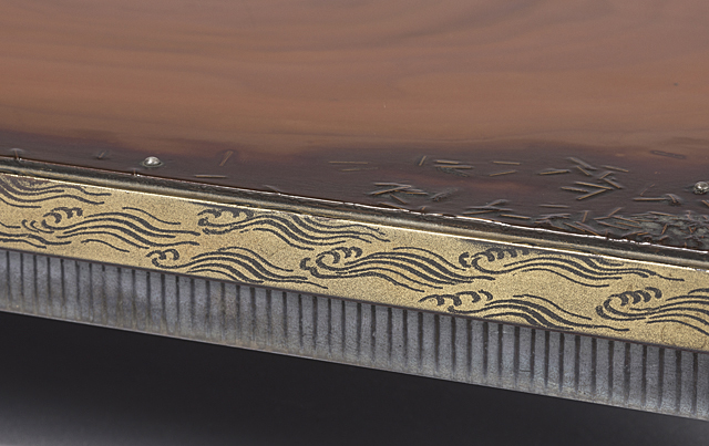 [Lot0667] Flat table with design of wave in maki-e lacquer