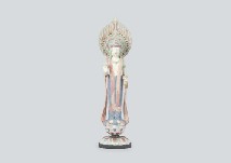 - color on wooden sculpture, H65.5xW17x16.7cm, marked on the back, with tomobako(the box signed by the artist).