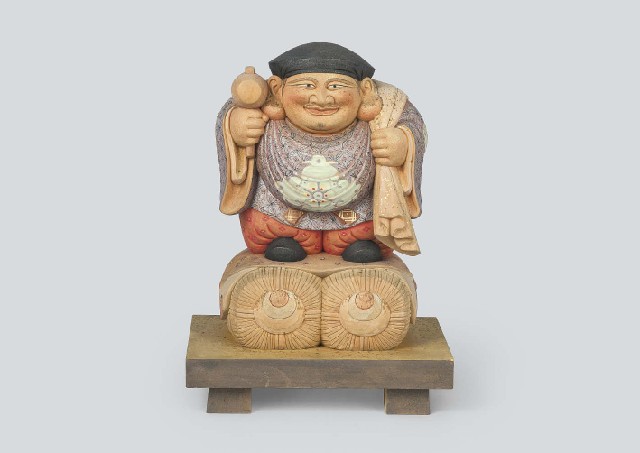 - color on wooden sculpture, H27.5xW19.8x17.2cm(including pedestal), marked on the side, without box, with an authenticity certificate by MIYAMOTO Nakahito, with a wooden pedestal and a glass case.