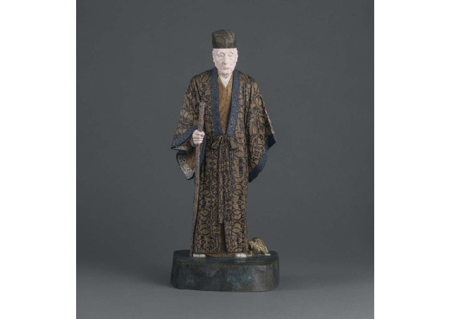 - 1951/1965(coloration), color on wooden sculpture, H49.6xW21.4x16.2cm, marked on the pedestral, with tomobako(the box signed by the artist), with an authenticity certificate by HIRAGUSHI Hiroko.