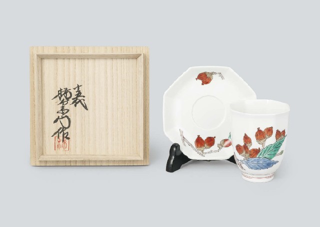 - cup/H9.2xW7.7cm, saucer/W12.7cm, with tomobako(the box signed by the artist).