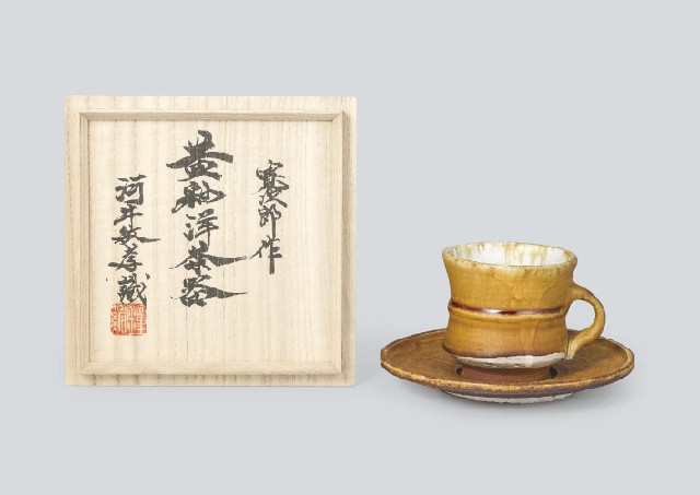 - cup/H7.6xW9.8cm, saucer/W15.1cm, each marked inside the foot-ring, with a box with kakitsuke by KAWAI Toshitaka.