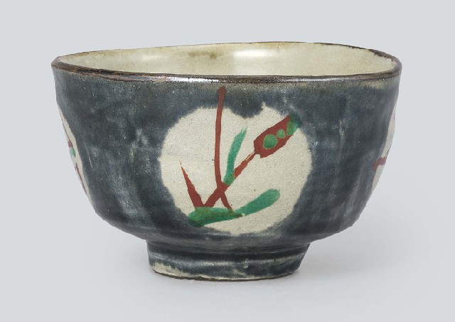 - Ryukyu tea bowl in azure glaze and overglaze enamel