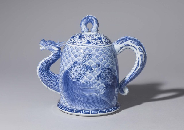 - Blue and white porcelain dragon shaped ewer with design of Genbu