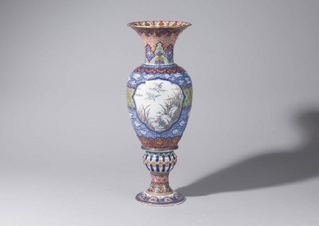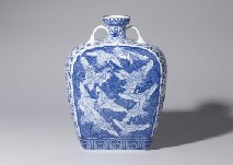 - Vase with design of reed and white heron in underglaze blue and overglaze enamels