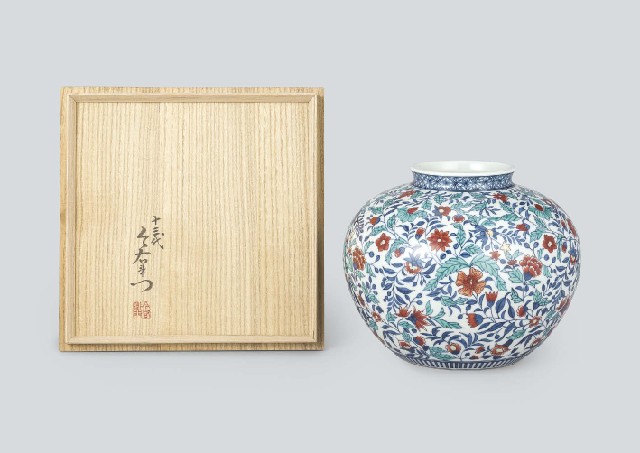 - Iro-nabeshima vase with design of grass and flower