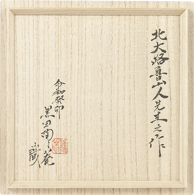 - H5xW19.7x19.8cm, marked underneath, with a box with kakitsuke by KURODA Totoan.