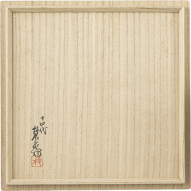 - H27.4xW32.8cm, with tomobako(the box signed by the artist), Exhibition: -Genealogy of Overglaze Enamel- Exhibition of Modern Ceramics in Overglaze Enamel, Tsukuba Seibu, 2003, with this catalogue.