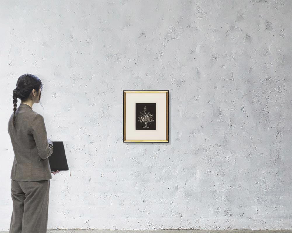 printed on cover of portfolio, Reifushobo No.330, 1963, 25x19cm, maniere noire, ed. (220), folded blank page, framed.