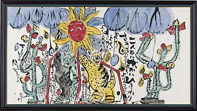 2000, ink and color on paper, paper size 96.3x180.3cm, signed and sealed, with a sticker of Galerie Nichido, framed.