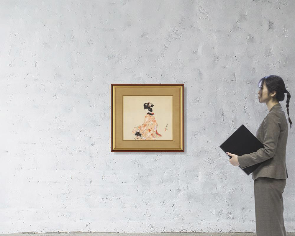 ink and color on paper, 41x46cm, signed and sealed, framed.