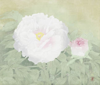 ink and color on paper, 10 Japanese painting type size (H53cm), signed and sealed, with a sticker signed and titled by the artist, framed.