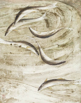 ink and color on paper, 12 Japanese painting type size (H60.6cm), signed and sealed, with a sticker signed and titled by the artist, framed.