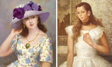 this lot accompanies another work; 【Girl in white clothes】(F15 (65.2x53cm), following details: identical to main item), both are not framed.Condition : some minor pigment loss to the edges; 【Girl in white clothes】: some stains and superficial craquelure at the image, some pigment loss to the edges.