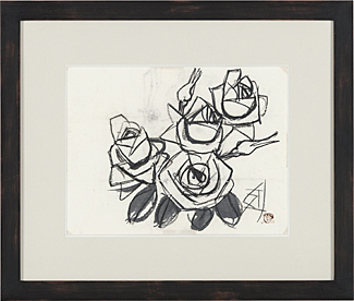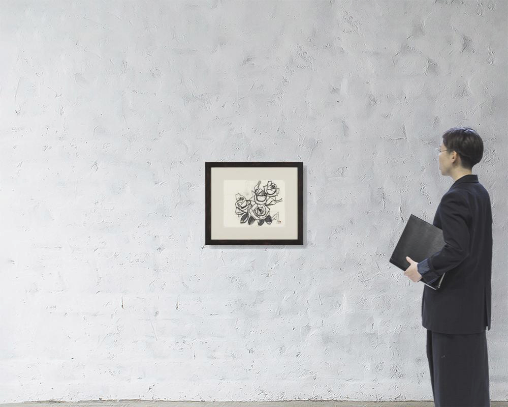this lot accompanies other works; 【Buddha is always】(ink and pencil on paper board, paper board size 40.8x31.7cm, signed and sealed)【Roses】(gouache and pastel on paper, paper size 25.7x34.6cm, signed and sealed), all framed.Condition : scattered craquelure and some pigment loss at the image, some minor creases and tears to the edges; 【Buddha is always】: pale toning at the image; 【Roses】: pale toning at the image.