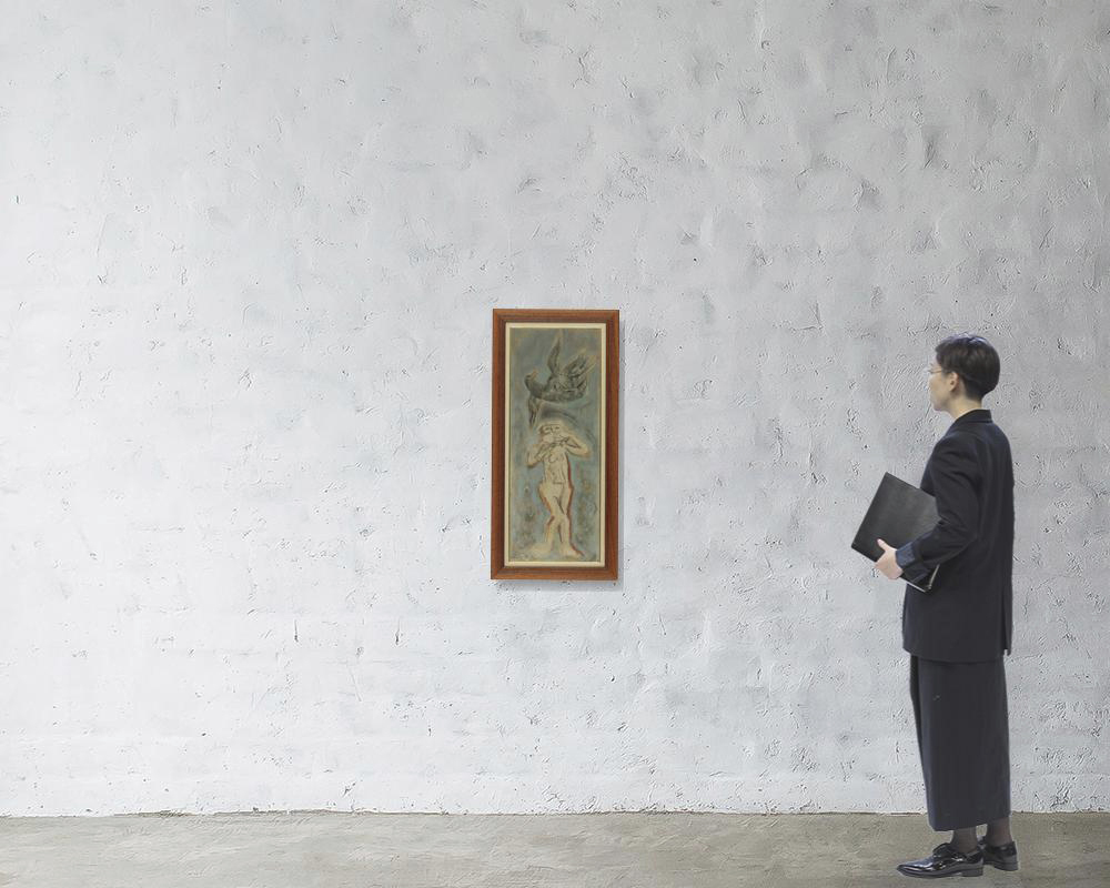 Condition : some minor stains, craquelure, pigment shrinkage and pigment loss at the image.
