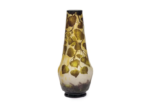 - H52cm, verre marmoreen, cameo glass, acid-etched, signed on the side.