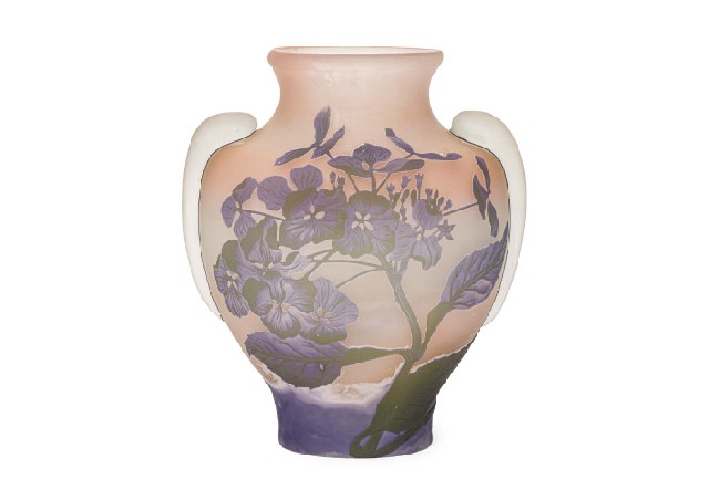 - H27.4xW23.5x17.7cm, cameo glass, application, acid-etched, signed on the side.