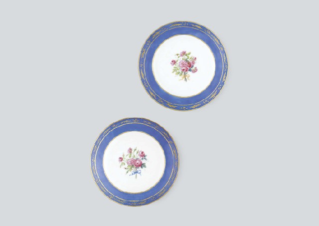 - circa end of the 18th century, D24.4cm, each marked and with a painter's mark on the bottom, [Cyprien Julien Hirelde CHOISY:1770-1811 enrollment], [Andre Joseph LA FRANCE:1776-1803, 1813-1825 enrollment].