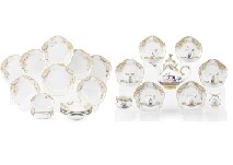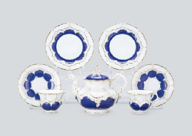 - pot/H17.2cm, 2 cups/D9.4cm, 2 saucers/D16.1cm, 2 plates/D19.6cm, each marked on the bottom.