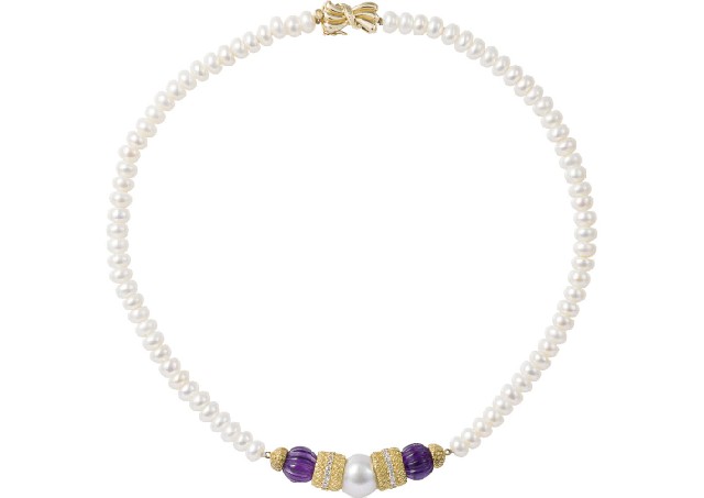 [Lot0239] Pearl Multi-gem Necklace