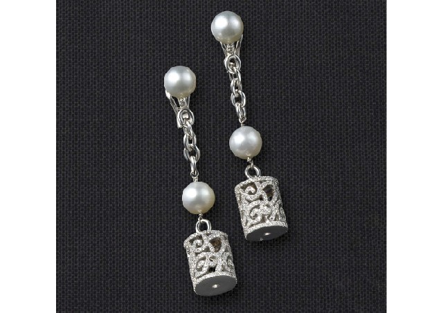 [Lot0243] Pearl Diamond Earrings
