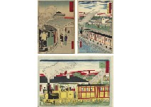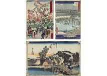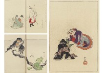 a set of 104: 93 Ukiyoe, 3 lithographs, 8 Shunga (6 ink and color on silk, 2 woodcut) (including some polyptychs and 2 identical prints) by KOBAYASHI Kiyochika, ITO Shinsui, KAWANABE Kyosai and various artist, sheet size 16.3x5.3-37.7x50.7cm, some signed and sealed on plate, signed on plate, sealed on plate, with publisher's seal, with a date seal, with a date seal and "Aratame" with censor's seal "Nanushi".