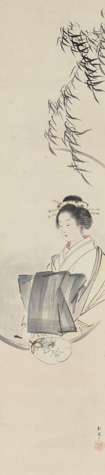 1941, ink and color on paper, 131.6x29.5cm, signed and sealed, mounted for scroll, with a wooden box signed by the artist.
