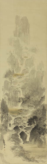 ink and color on silk, 126.9x36.4cm, signed and sealed, mounted for scroll, with a wooden box signed by the artist.