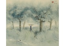 ink and color on silk, 36.2x41.8cm, signed and sealed, mounted for scroll, with a wooden box signed by the artist.
