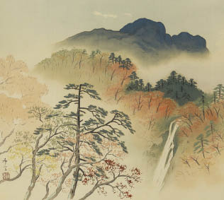 ink and color on silk, 46x51.7cm, signed and sealed, mounted for scroll, with a wooden box signed by the artist.