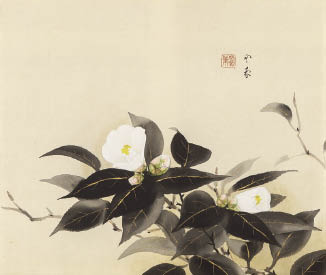 ink and color on silk, 36.5x42.4cm, signed and sealed, with a board signed by the artist, framed.