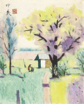 ink and color on paper, 28.2x23cm, signed and sealed, with a sticker signed and titled by the artist, framed.
