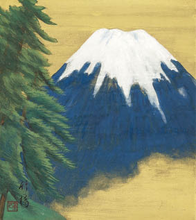 color on golden silk, paper board size 27x24cm, signed and sealed, framed.