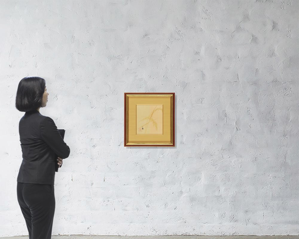 color on silk, paper board size 27x24cm, signed and sealed, with a Tatou case, framed.