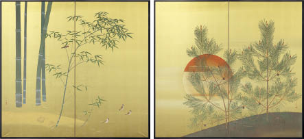- Sparrow in Bamboo / Sunrise (a pair of 2-panel byobu screens)
