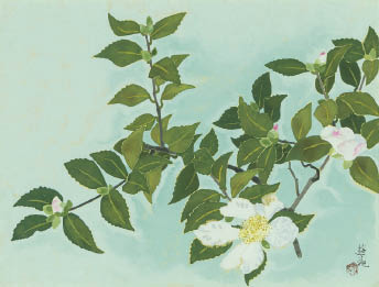 ink and color on paper, 43.8x57cm, signed and sealed, with a sticker signed and titled by the artist, with a sticker of "The 6th Kanaekai" (Takashimaya Department Store), framed.