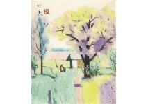 ink and color on paper, 45x58.5cm, signed and sealed, with a sticker of TSUCHIYA Reiichi, framed.