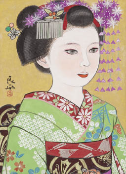 ink and color on paper, 4 Japanese painting type size (H33.4cm), signed and sealed, with a sticker signed and titled by the artist, framed.