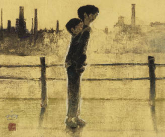 color on canvas laid down to panel, 8 Japanese painting type size (H45.5cm), signed and sealed, with a sticker signed and titled by the artist, framed.