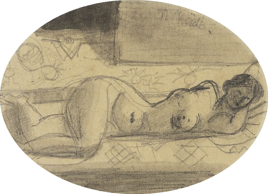 1928, pencil and watercolor on paper, paper size 8.2x10.7cm, signed, framed.