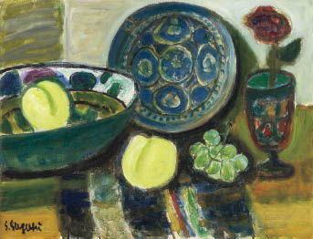 oil on canvas, P10 (53x41cm), signed, also signed and titled on the stretcher, with a sticker of "Solo Exhibition" (Mitsukoshi, 1963), framed.