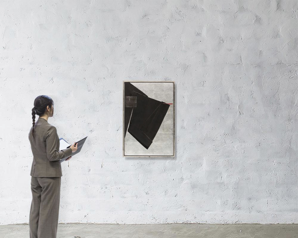 1982, ink, silver paint and red ink on silver paper laid down to panel, 91x60.5cm, signed, with a sticker of Galerie Tokoro, framed.* *Not examined out of frame.