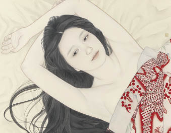 ink and color on silk, 6 Japanese painting type size (H41cm), sealed, with a sticker signed and titled by the artist, framed.