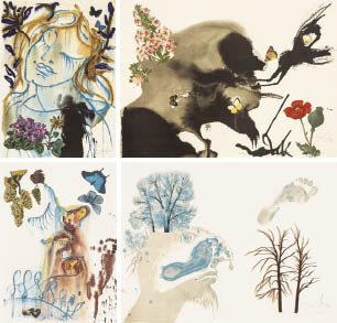 a portfolio of 4 lithographs "spring" "summer" "autumn" "winter", MICHLER & LOPSINGER 1368-1371, 1972, 56x76.6-76.3x56.3cm (the full sheet), all signed and ed.CC, published by Mitsukoshi, with an original case, one framed.* *Not examined out of frame.
